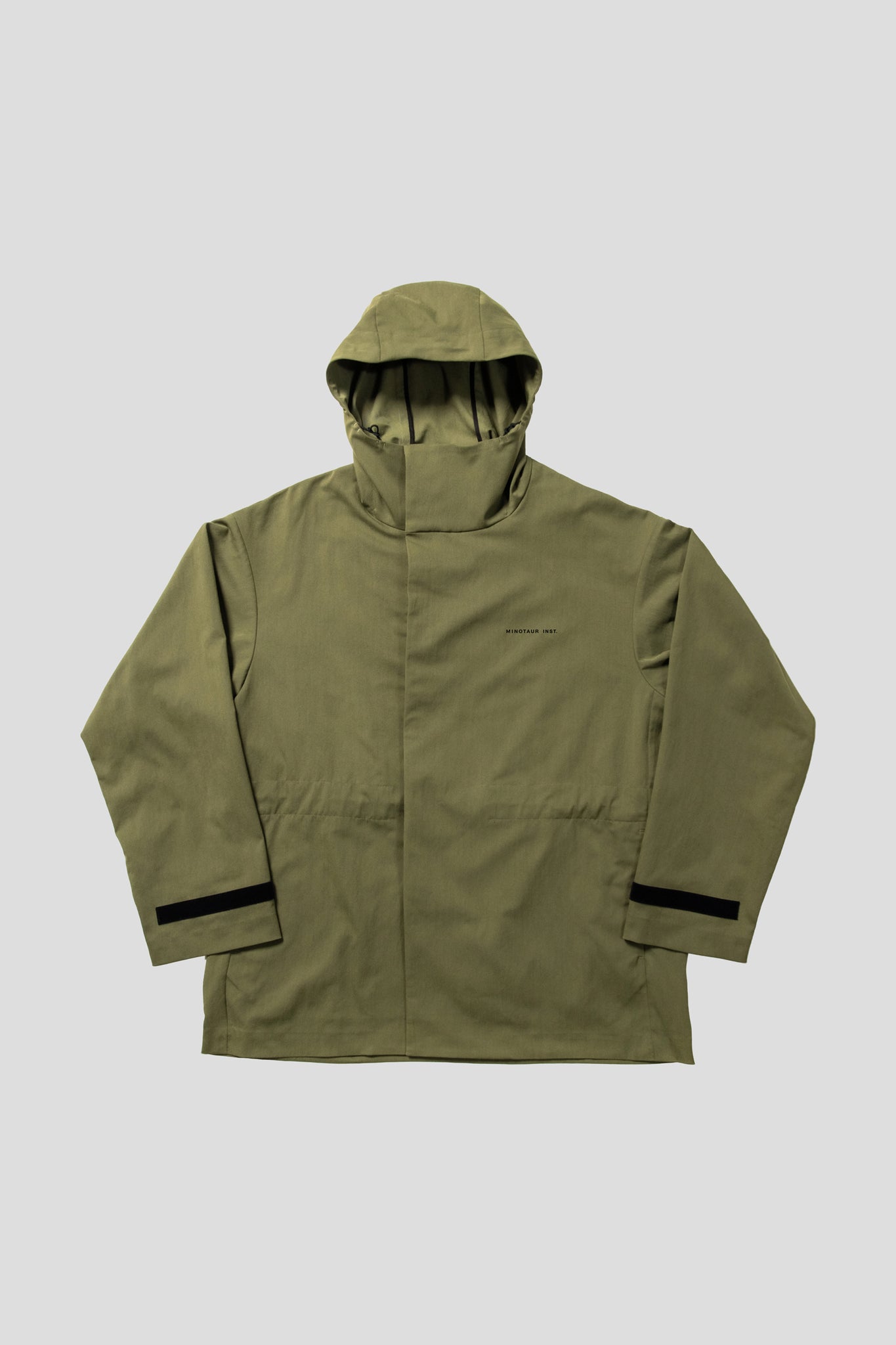 A slightly elevated hood creates a distinctive silhouette, while the drawcord at the waist allows for adjustable shaping.
