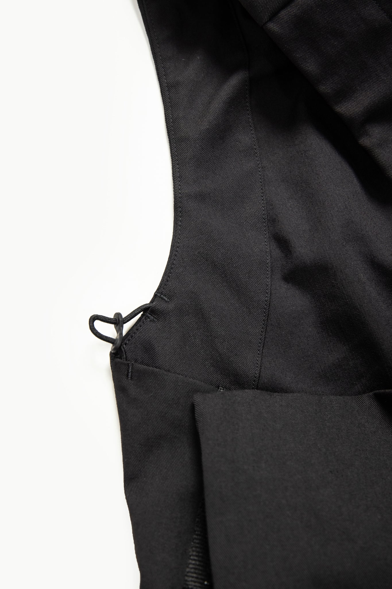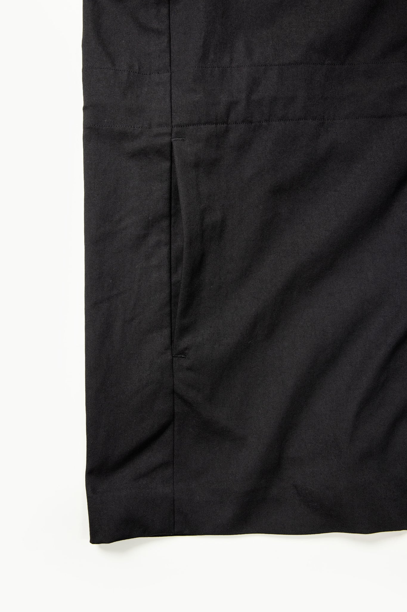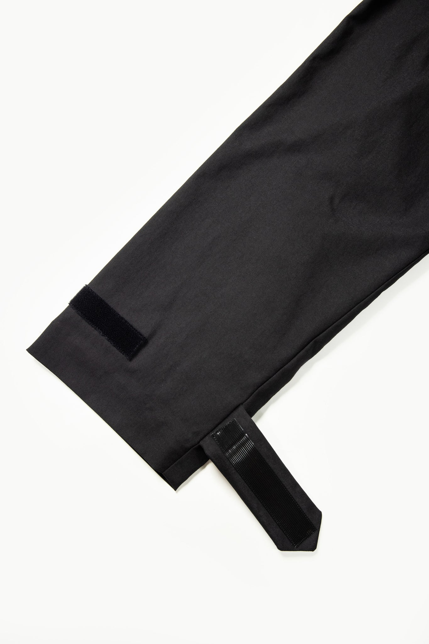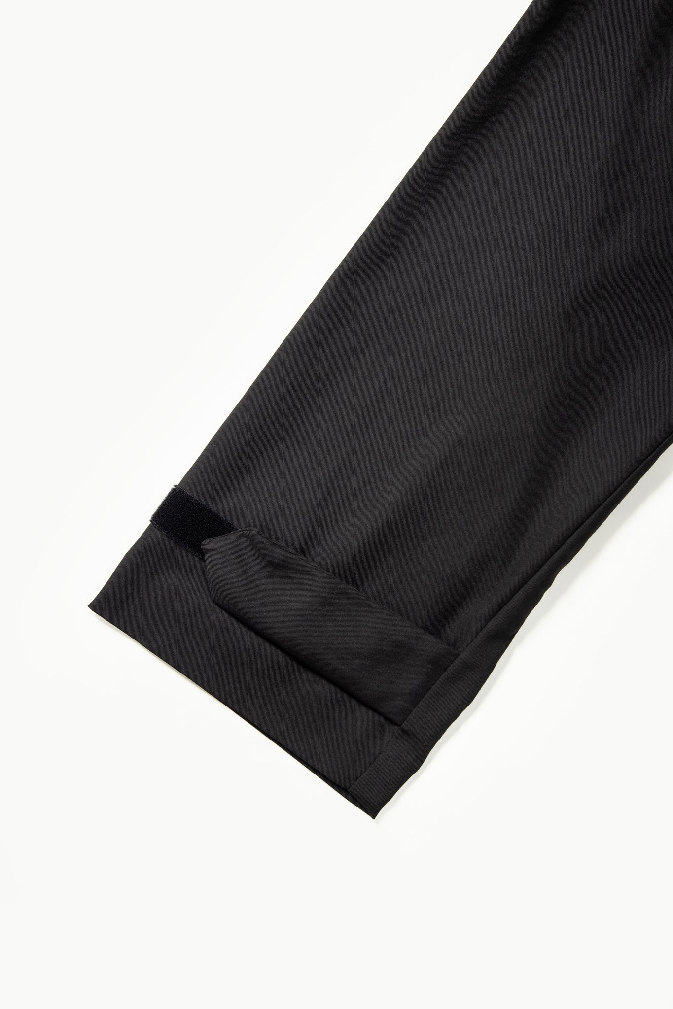 By utilizing technical materials, military elements are reinterpreted into a modern short coat.