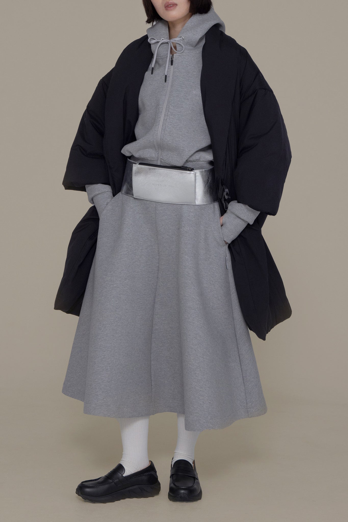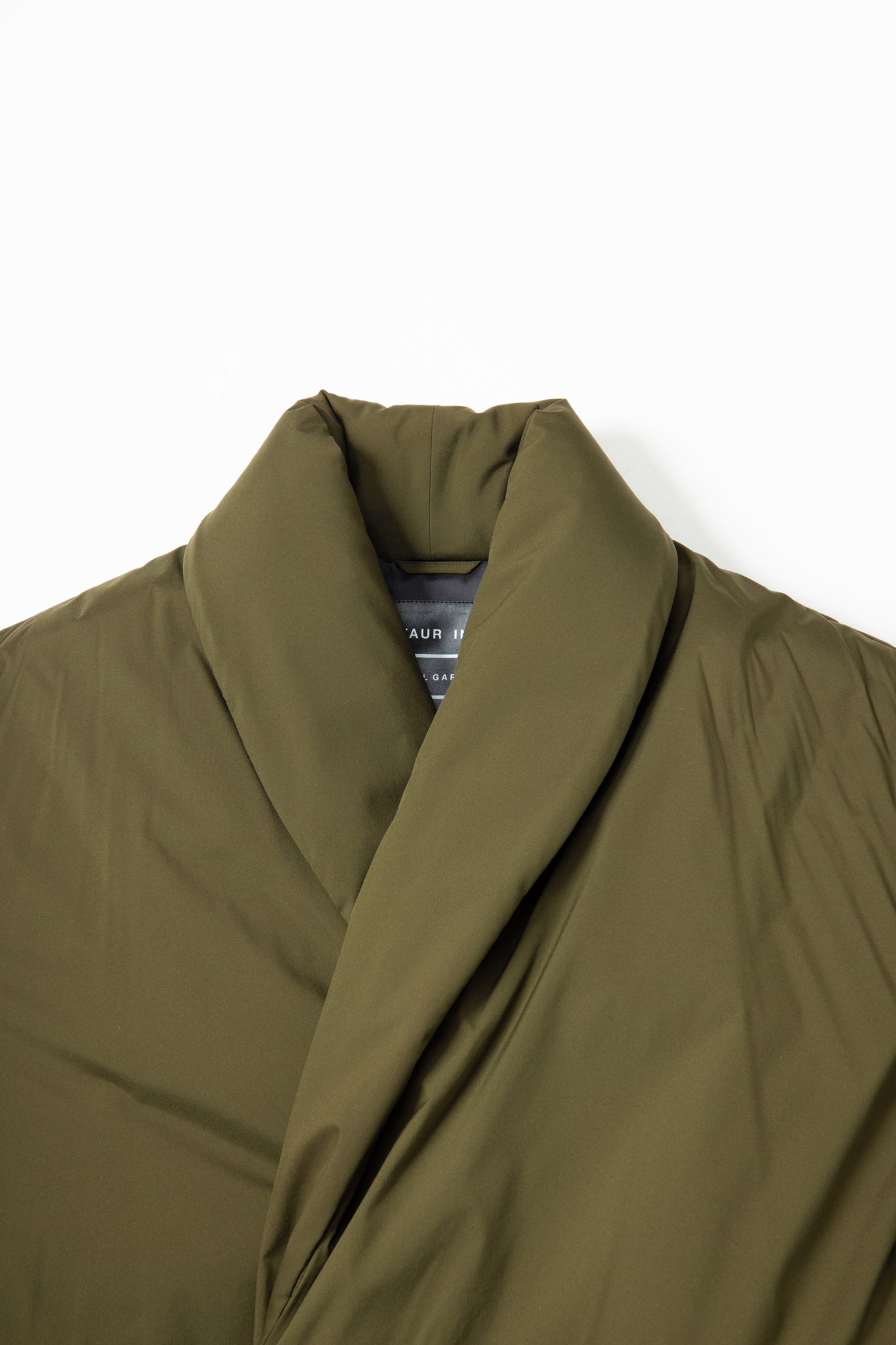 This unisex coat is inspired by the KIMONO, featuring a unique sleeve line with a subtle flared silhouette.