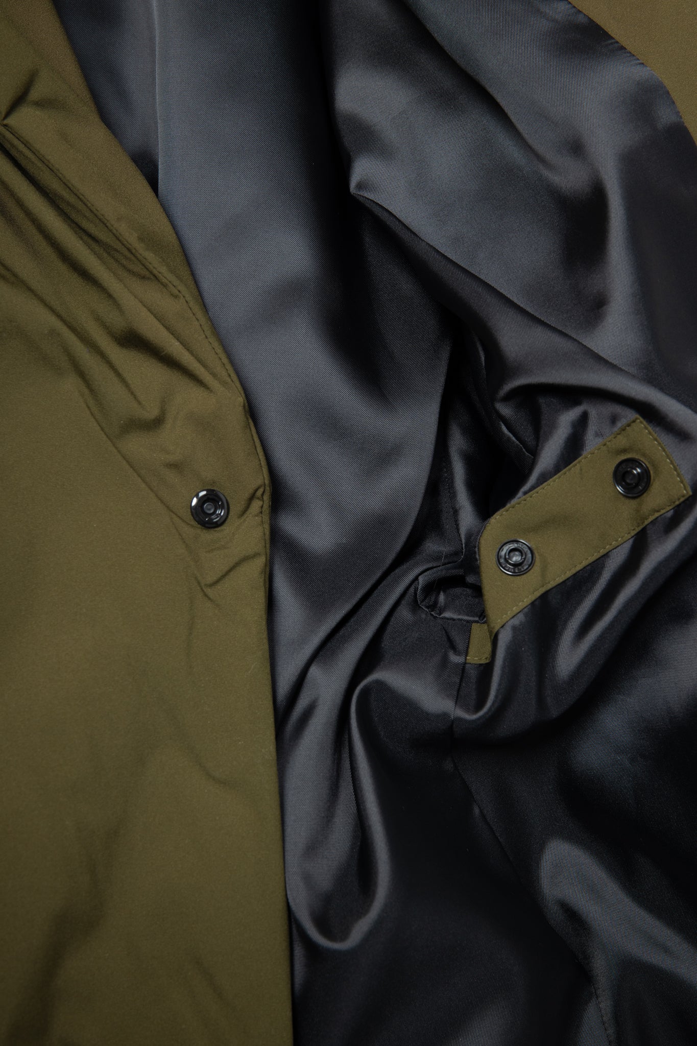 A stretch fabric with durable water repellency and breathability, finished with a soft coating that preserves the natural, high-quality texture of the material.