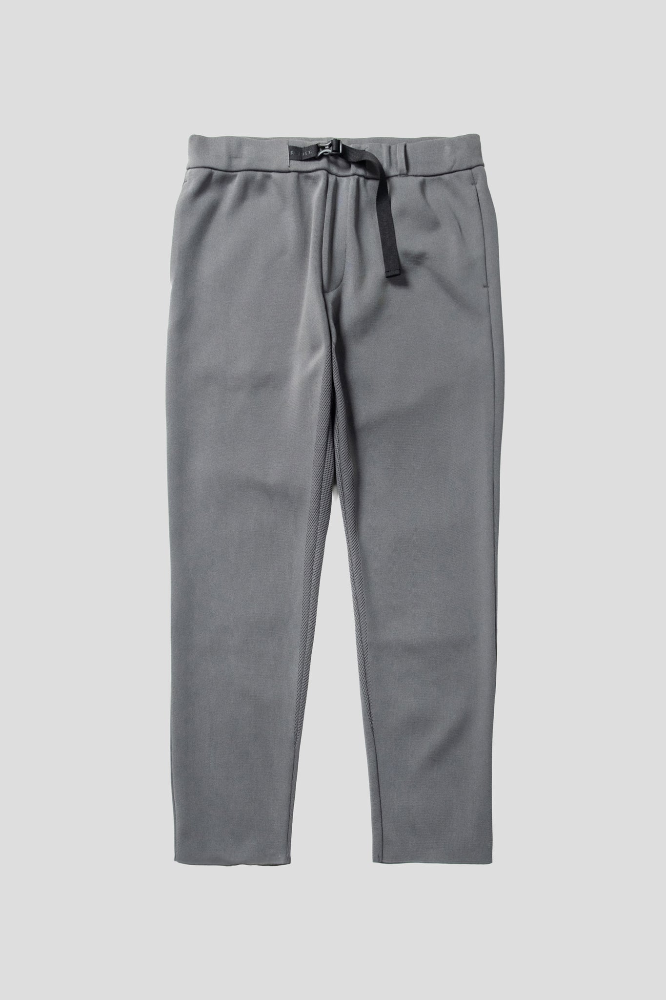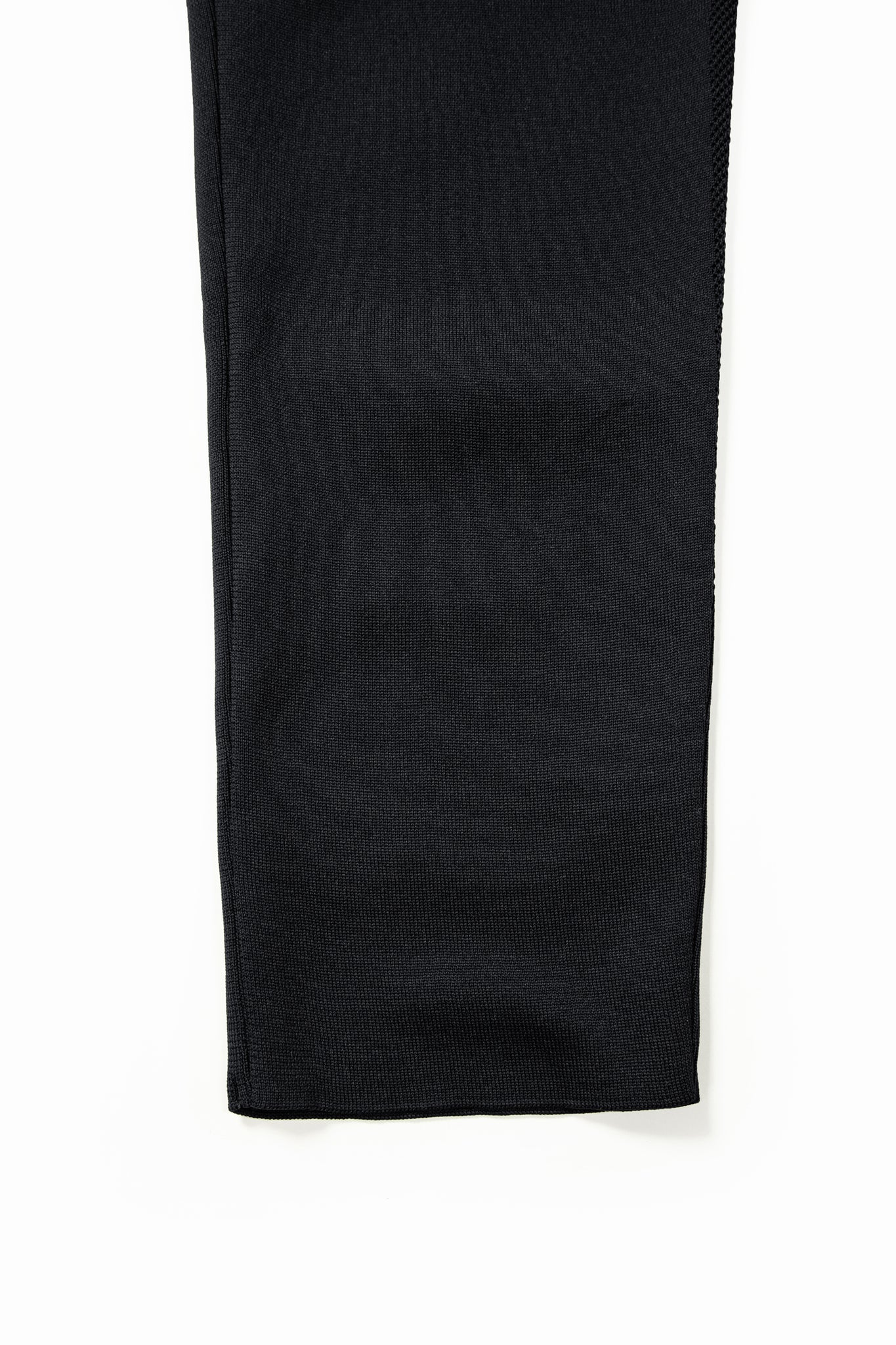The knit 2-tuck pants with an elastic waist adjuster belt are made from a technical and light yarn that is knitted with ventilation (ventilation dot holes) in the inseam.