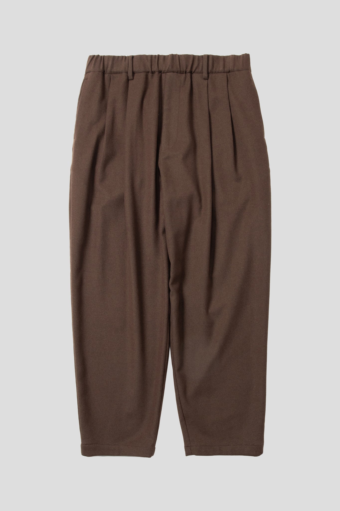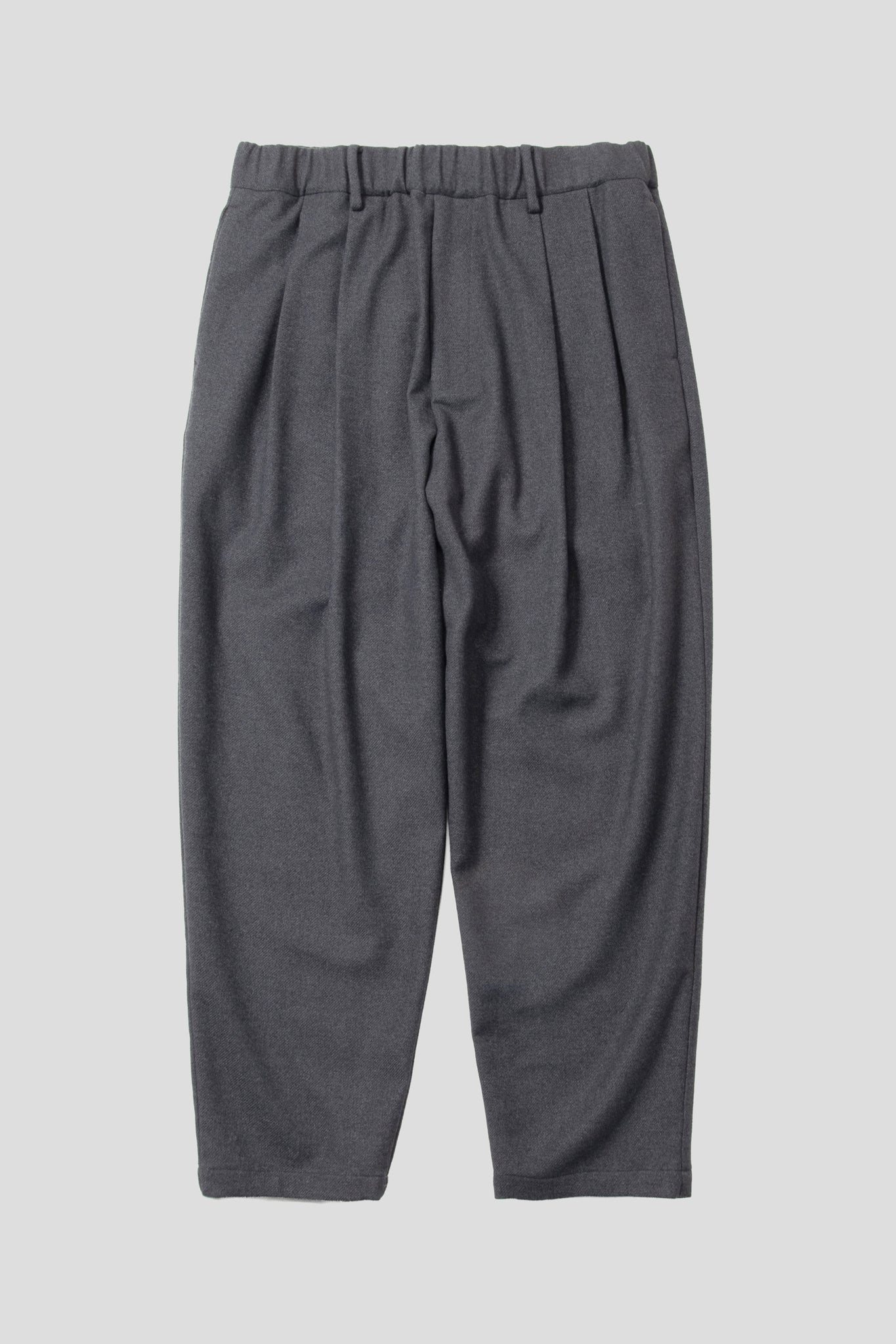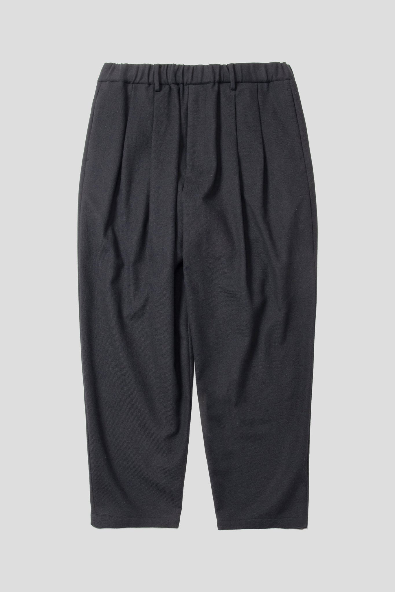 Featuring a slightly tapered silhouette below the knee, these wide two-tuck slacks offer a relaxed yet formal look.