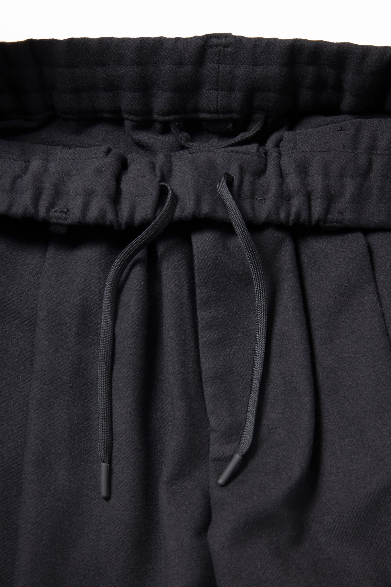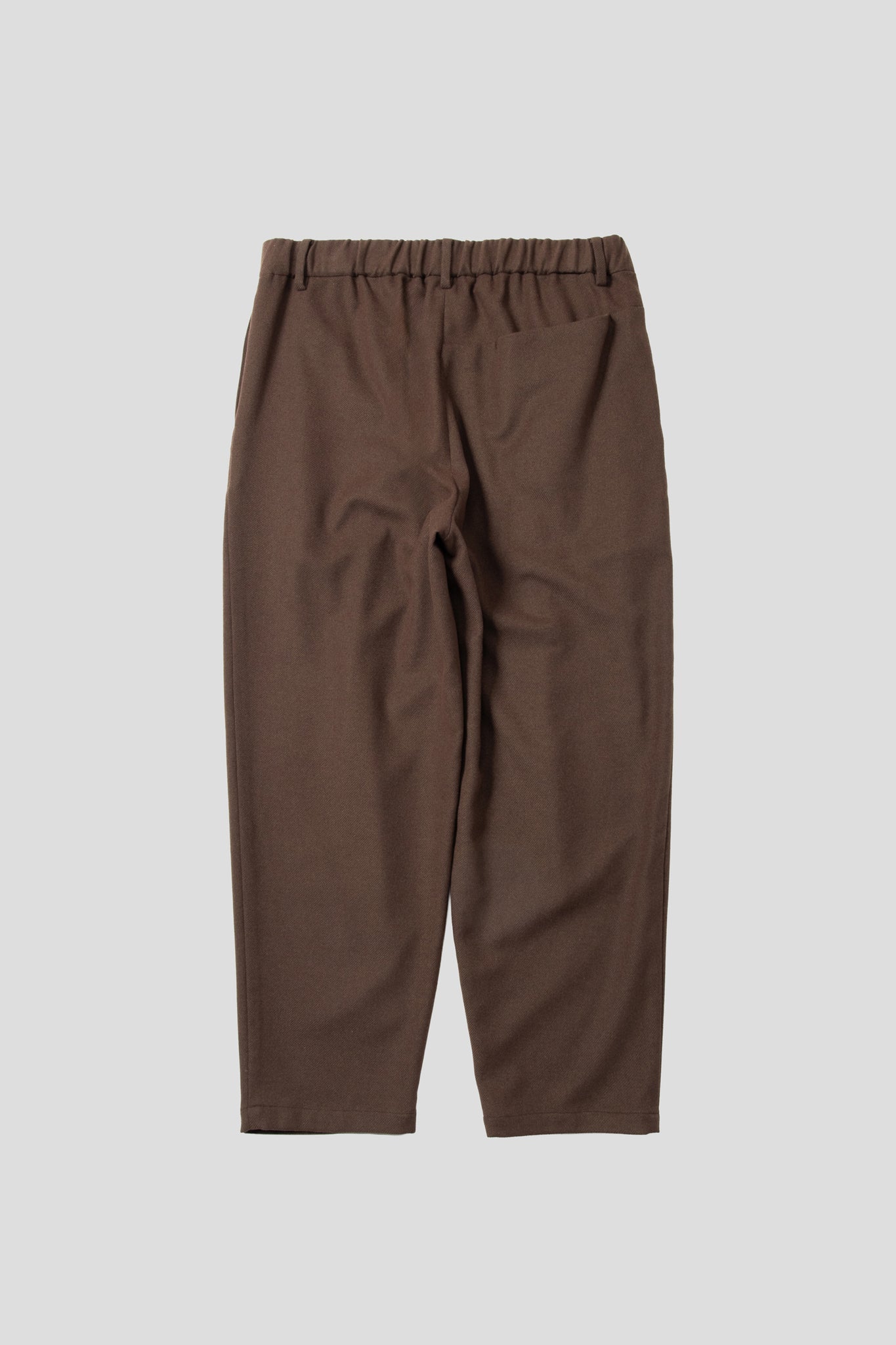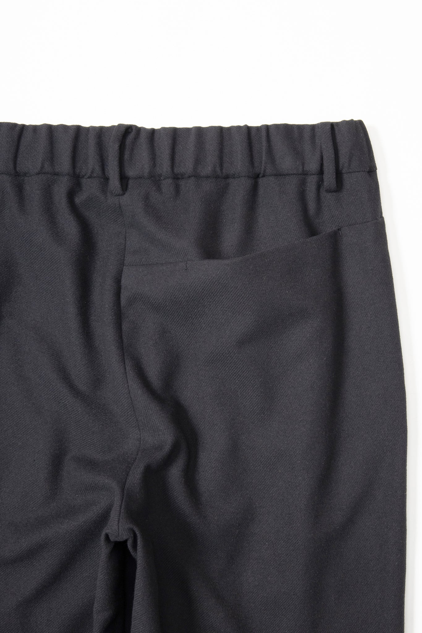 Featuring a slightly tapered silhouette below the knee, these wide two-tuck slacks offer a relaxed yet formal look.